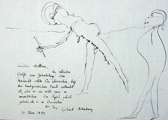 Graphitzeichnung auf Bütten mit Widmung,