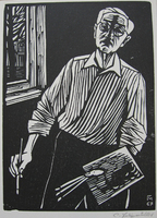 Conrad Felixmüller: Selbstbildnis mit Pinsel und Palette Söhn 635 c , 1967