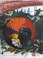 Claus Weidensdorfer: Brücke mit stürzenden Figuren , 1980