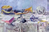 Ernst Hassebrauk: Stilleben Vanitas mit Buch und Trompete , 1942