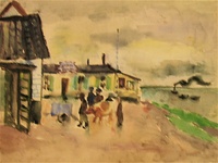 Hans Jüchser: Dörfliche Szene in Dänemark , 1935