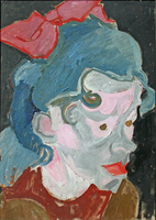 Carl Lohse: Mädchenbildnis mit roter Haarschleife in blauem Haar , 1920