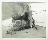 Curt Querner: Häuser in Börnchen, vorn Schuppen WVZ B 2147 , um 1974