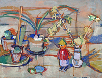 Albert Wigand: Stilleben mit Spielfigur und Blumentöpfen , 1922