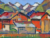 Albert Wigand: Ohne Titel (Häuser vor Gebirge) (Kopie) , um 1920