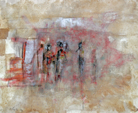Eugen Batz: Ohne Titel. Tunesien. Figurengruppe und Landschaft , 1977