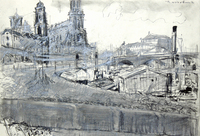 Ernst Hassebrauk: Blick auf Dresden vom Terrassenufer , Um 1960