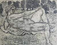 Wilhelm Rudolph: Liegender Akt vor Bäumen um 1975 , Um 1975