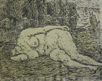 Wilhelm Rudolph: Lieg. Akt vor Pillnitzer Insel (II). Zustandsdr. Um 1980 , Um 1980