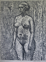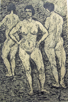 Wilhelm Rudolph: Drei Frauen (Akte). Um 1980 Holzschnitt (Kat.Nr. 78) , 1980