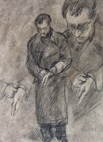 Wilhelm Rudolph: Junger Mann mit langem Mantel (mit zwei Handstudien), nach45 , nach 1945