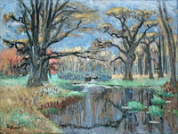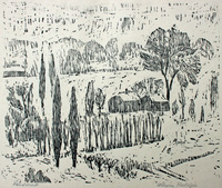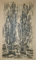 Wilhelm Rudolph: Landschaft mit Pappeln , Um 1960