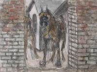 Wilhelm Rudolph: Zwei Boxerhunde vor der Hütte Vor 1945 (um 1955-1960) , Um 1955-1960