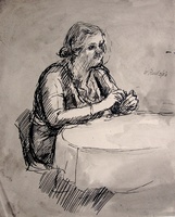 Wilhelm Rudolph: Junge Frau an einem runden Tisch. Um 1945 ,