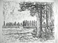 Wilhelm Rudolph: Pappelreihe an der Elbe , 1970